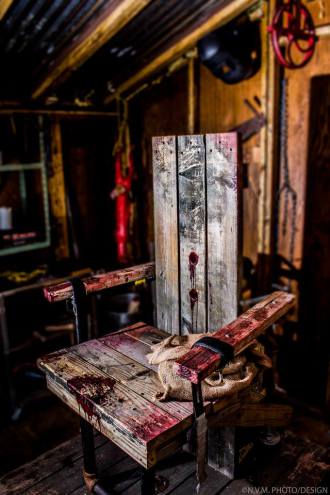 A wooden chair sat erect in the center of the shed, surrounded by shelves full of items used for various torture and killing methods. The chair itself, a device